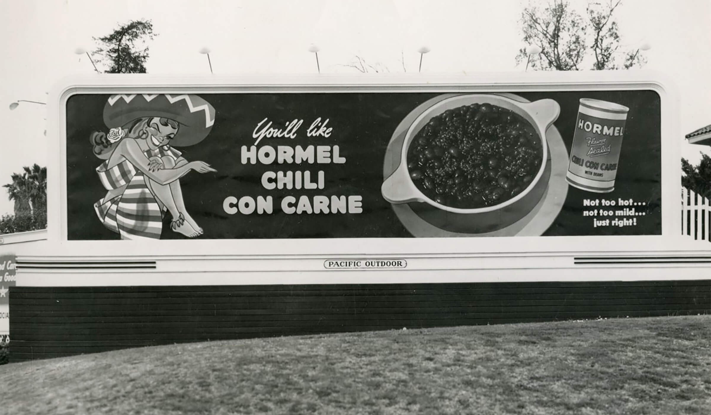 A billboard in California in mid 1940s featuring the character “Forever Chili”
