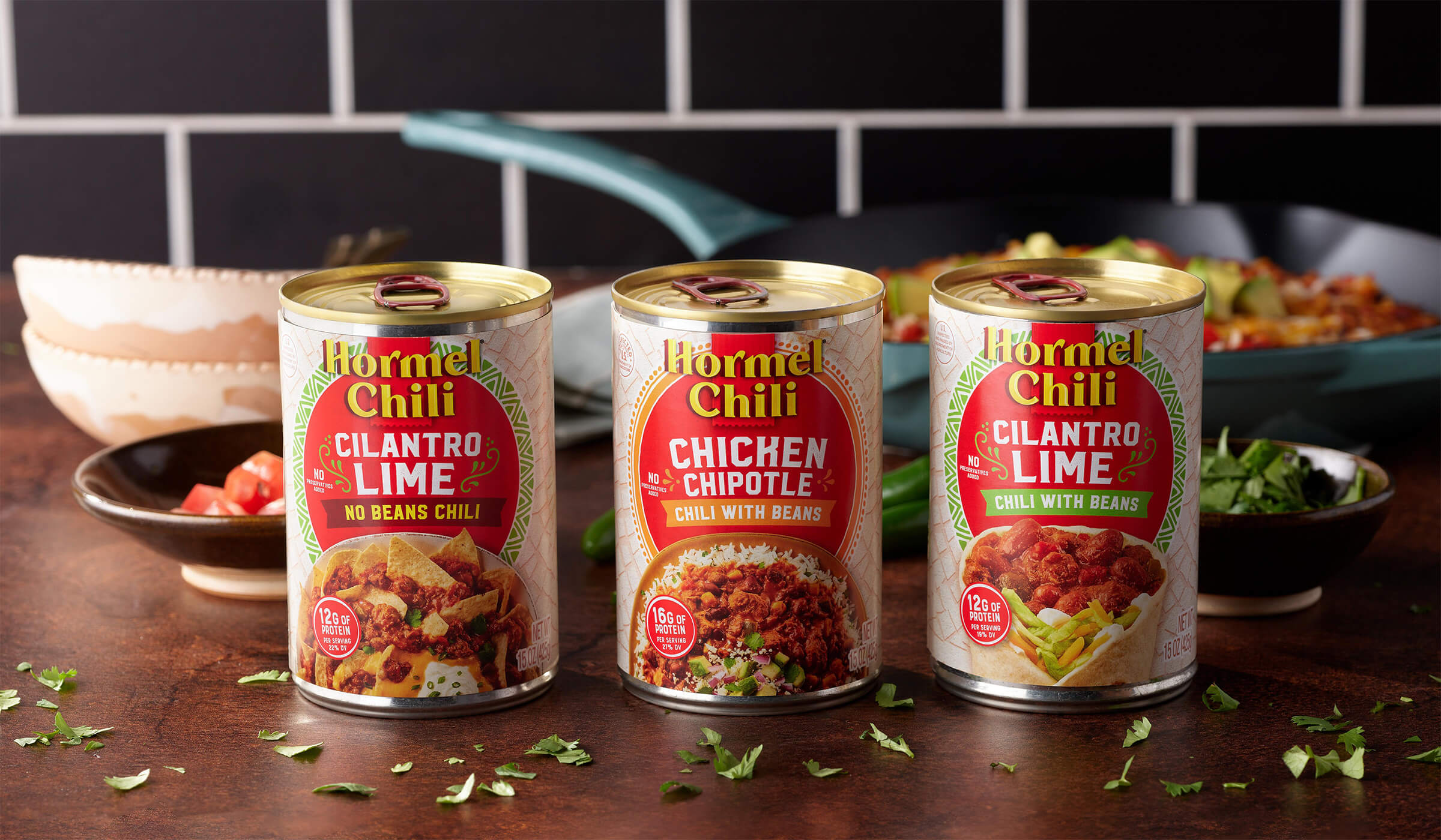 Three new varieties of HORMEL® Chili launched in 2025-HORMEL® Cilantro Lime Chili with Beans, HORMEL® Cilantro Lime Chili without Beans and HORMEL® Chicken Chipotle Chili with Beans