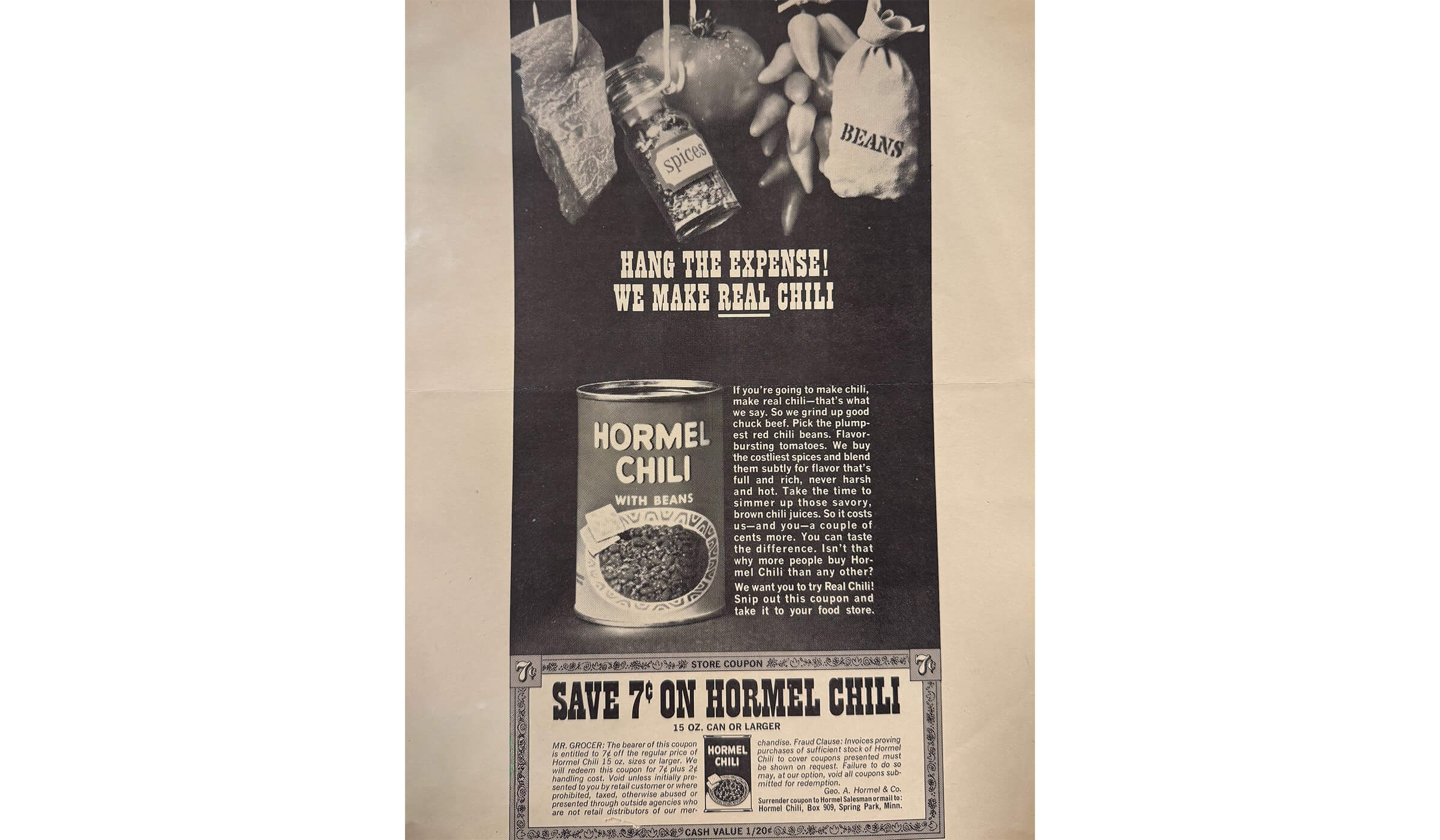 HORMEL® Chili continues the slogan “It’s Real Chili” into the late 1960s