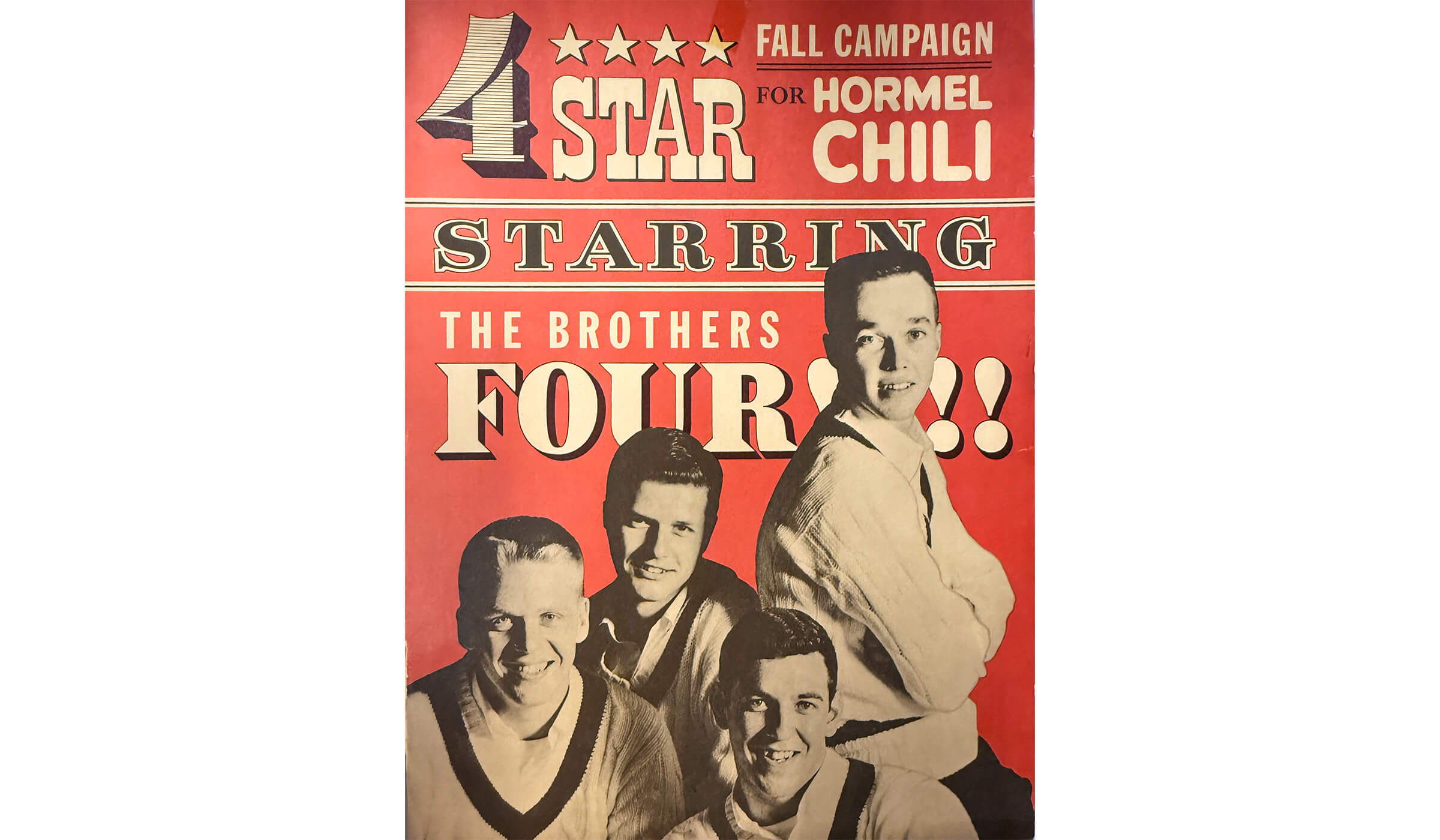The musical group ‘The Brothers Four’ began advertising HORMEL® Chili on radio spots and television