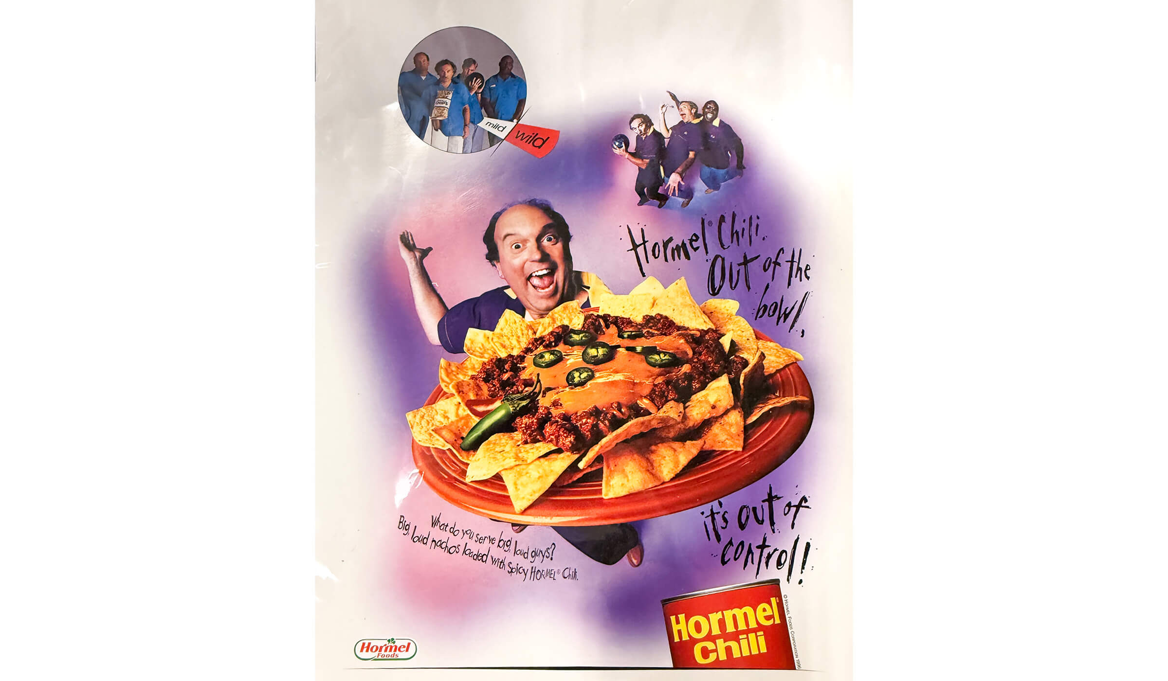 An early 2000s ad featuring HORMEL® Chili as a topping for nachos