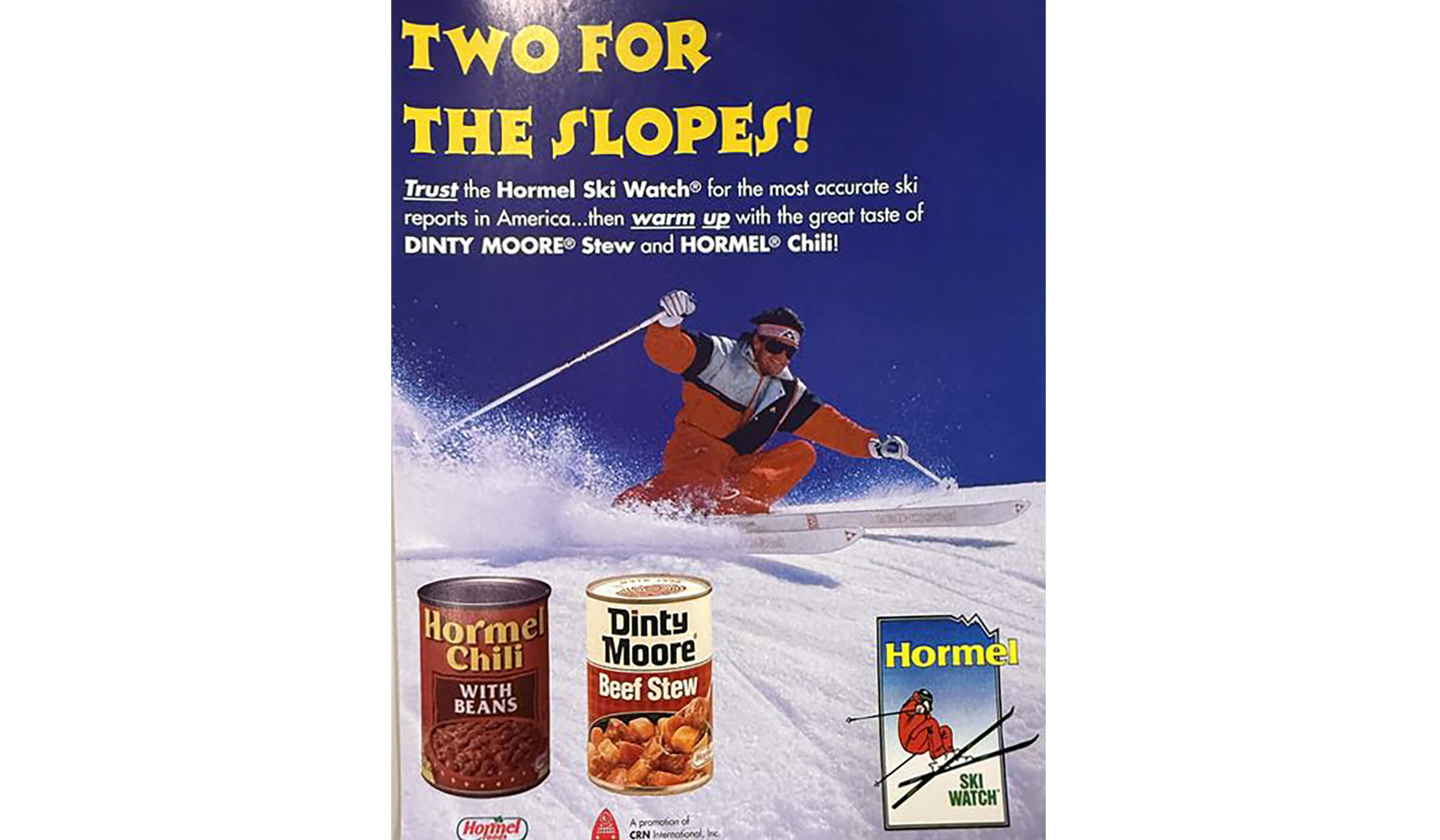 In the 1970s, HORMEL® Chili was celebrated as America’s favorite chili and promoted with lively new slogans, including “HORMEL®, the Good Time Chili” and “The Next Best Thing to Homemade.” In 1971, a new variety— HORMEL® Hot Chili—rolled off the production line, giving fans a spicier option. TV commercials put chili on the move with advertising adventures like the “football bus”, “ski bus” and “camper”, while promotions such as a Premium Poncho giveaway and the Good Time Chili theme secured its place at parties, tailgates, and campfires. Football remained a central part of chili’s identity, with advertising and promotions keeping the game-day connection alive. By 1979, the brand reintroduced itself with the slogan “Homemade Without the Work,” supported by wide-reaching ads on TV, radio, print, and billboards, solidifying HORMEL® Chili’s role as a comforting, convenient staple for busy families.