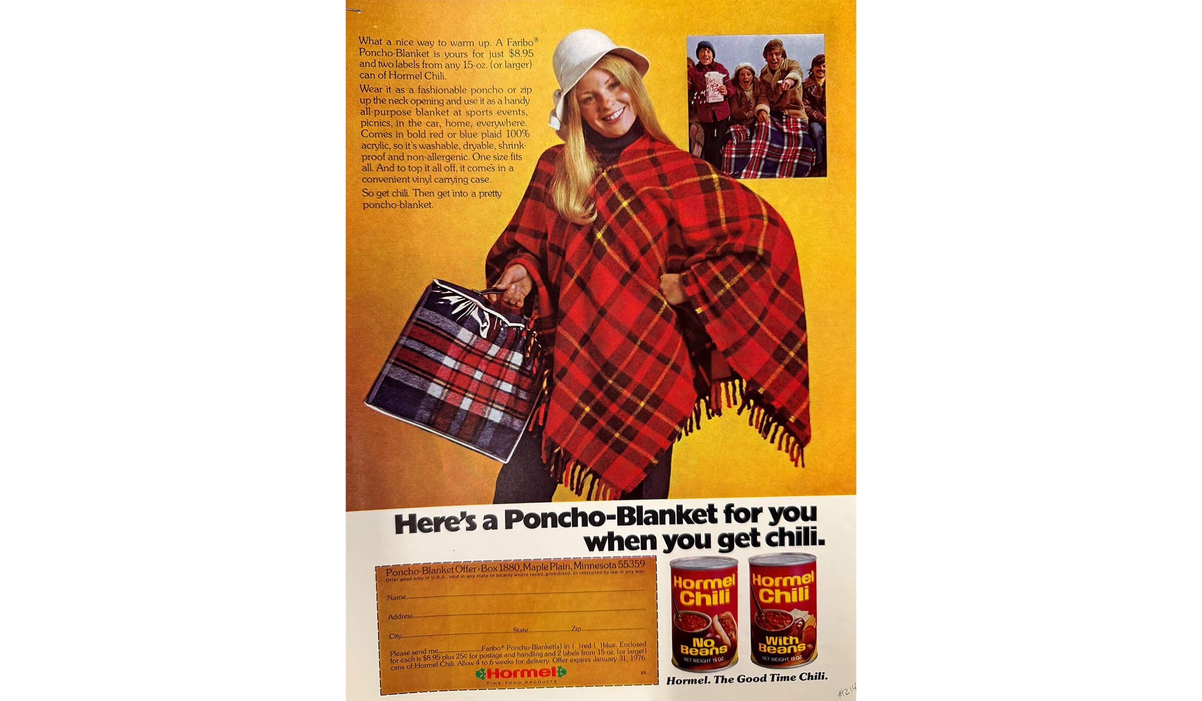 Mid 1970s Poncho blanket with purchase of HORMEL® Chili